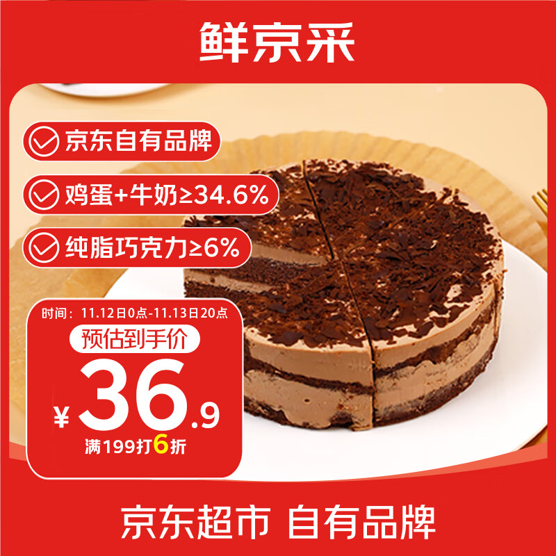 包邮 鲜京采 黑巧酪酪巧克力蛋糕420g/6块 动物奶油零食糕点下午茶中秋聚会
