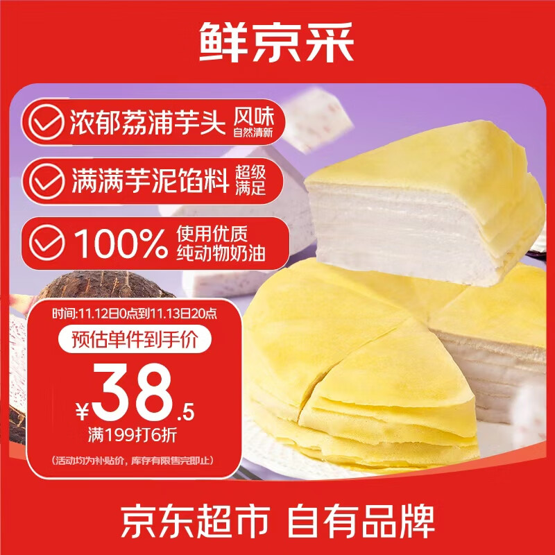 包邮 鲜京采【爆款】抹茶千层蛋糕400g动物奶油 冰淇淋蛋糕零食糕点中秋聚会